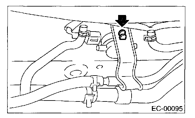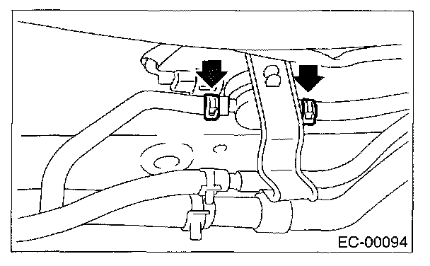 5. Disconnect two evaporation hoses from pressure control solenoid valve.