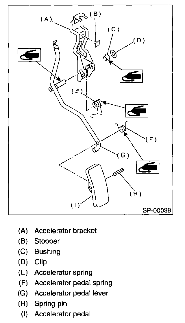 CAUTION: Clean and apply grease to spacer and inside bore of a accelerator pedal.