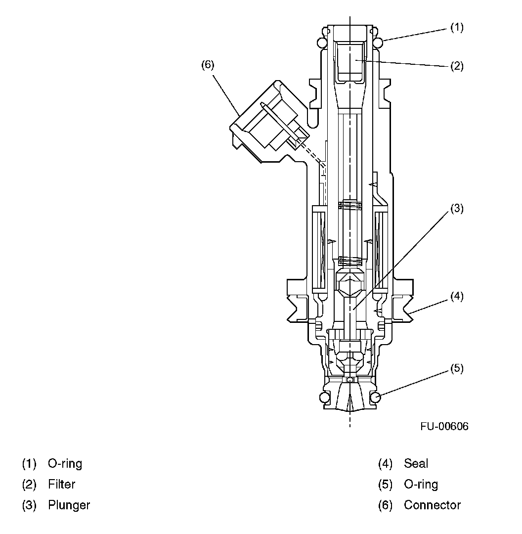 - Since the injector's nozzle hole area, the lift of valve and the fuel pressure are kept constant, the amount of fuel injected is controlled only by varying the duration of the valve open signal from the ECM.