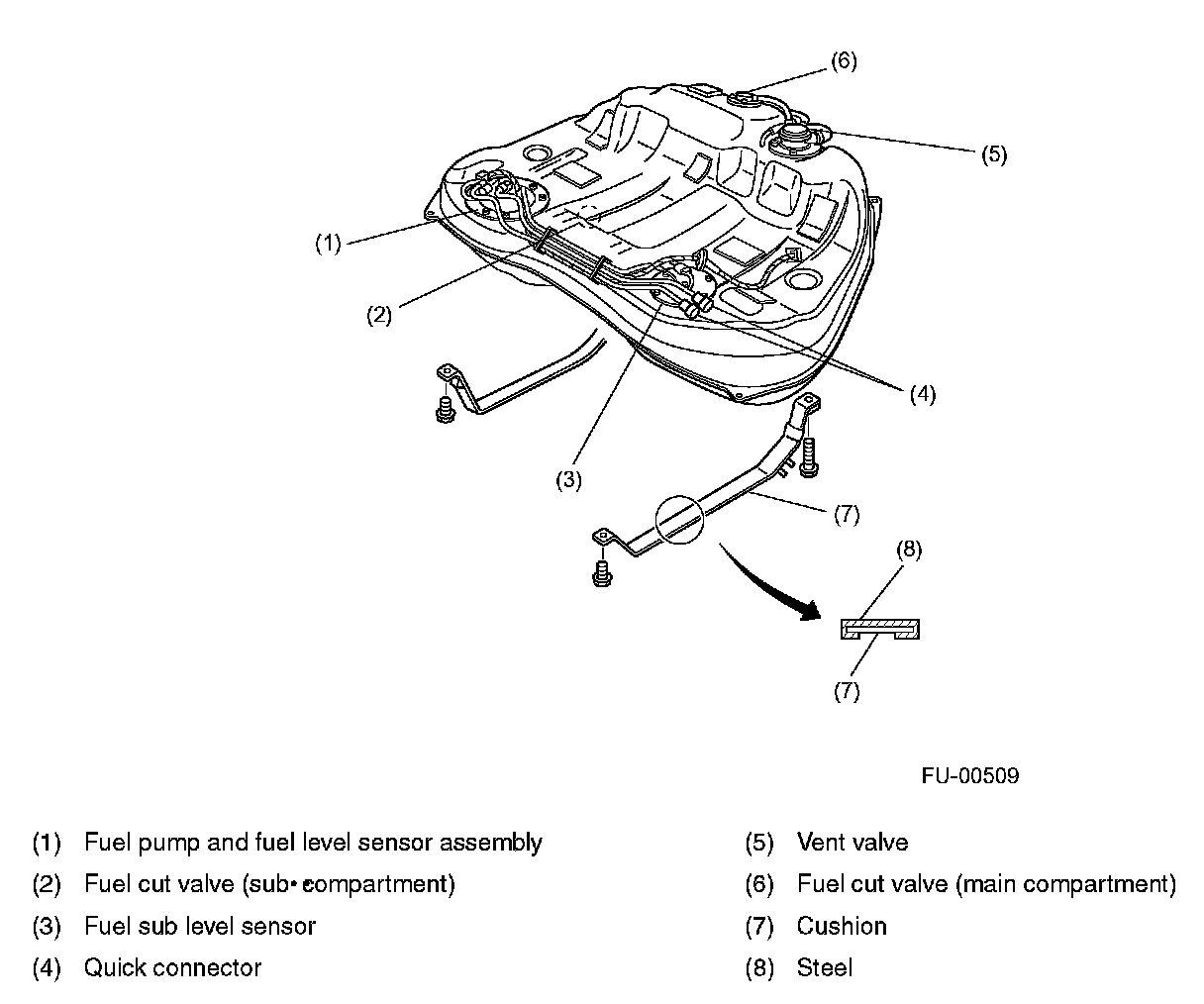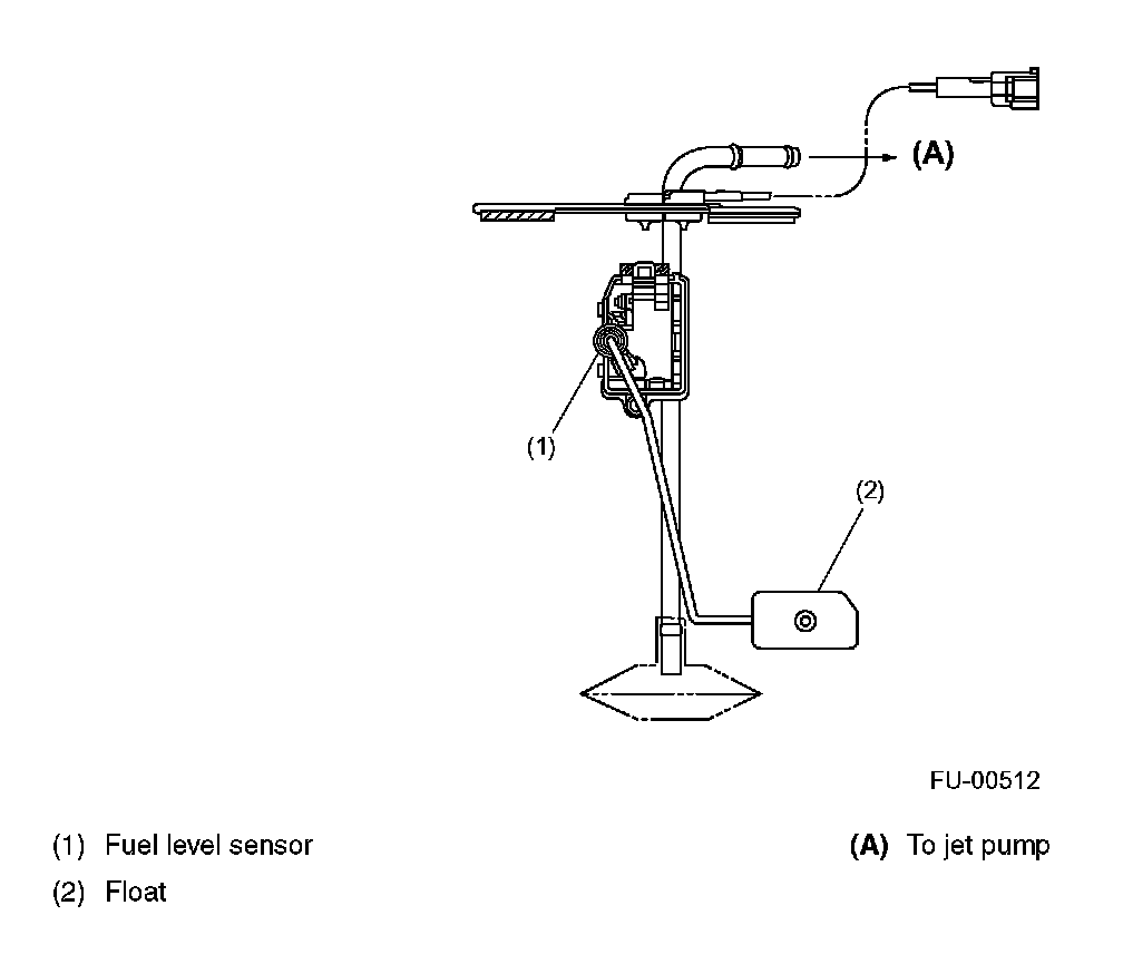 This sensor detects the level of the fuel in the sub-compartment (the compartment in which the fuel pump is not located) and acts as part of the fuel transfer line when the jet pump is in operation to maintain the fuel in both compartments at the same level.