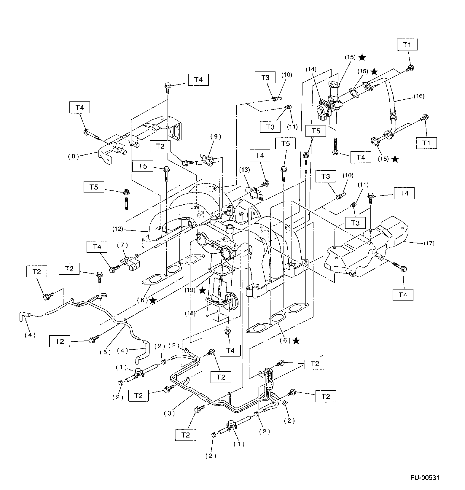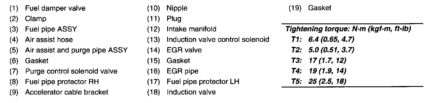 Tightening torque: 19 N.m (1.9 kgf-m, 14 ft-lb)