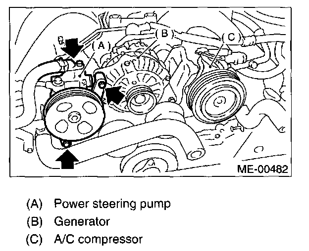 3. Remove bolts which install power steering pump bracket.
