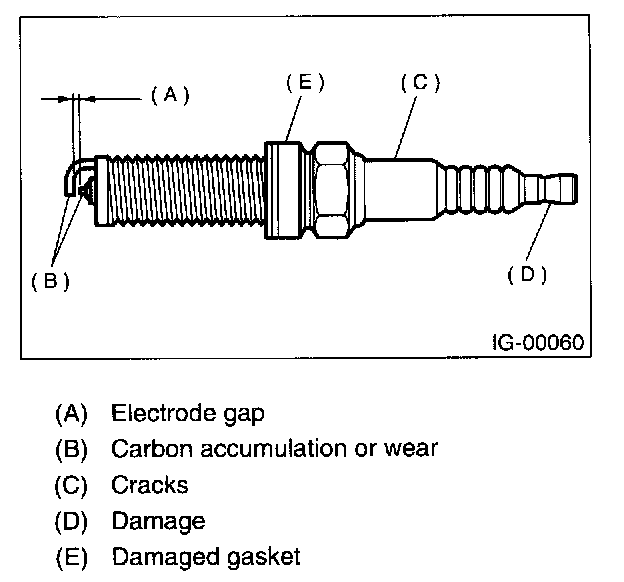 Check the electrodes and inner and outer porcelain of plugs, noting the type of deposits and the degree of electrode erosion.
