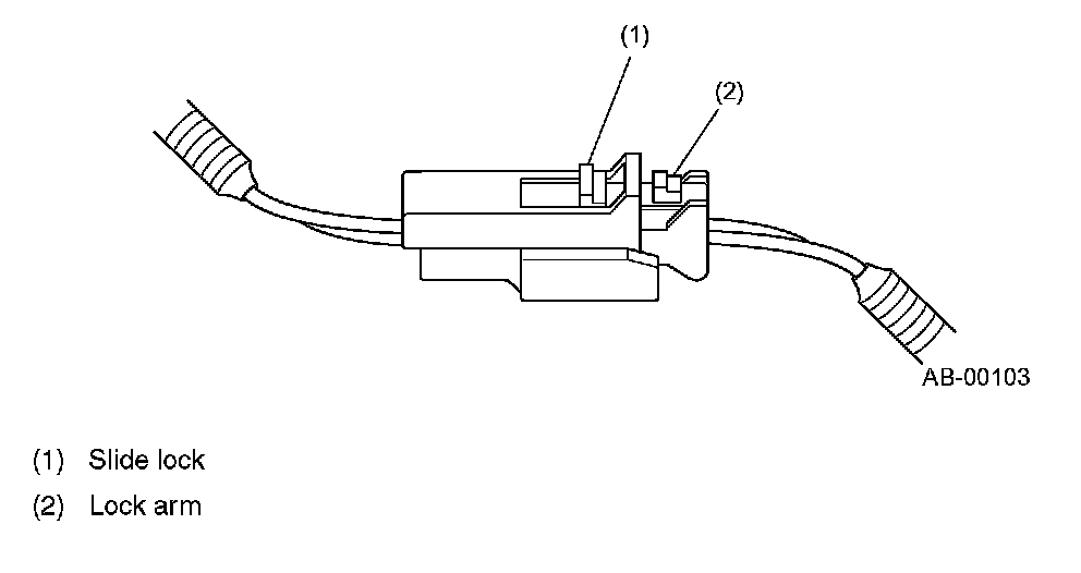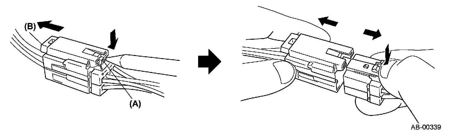 Insert the male side connector half into the other until a "click" is heard, then push in the green lever (B) until a "click" is heard.This engages the double lock mechanism.