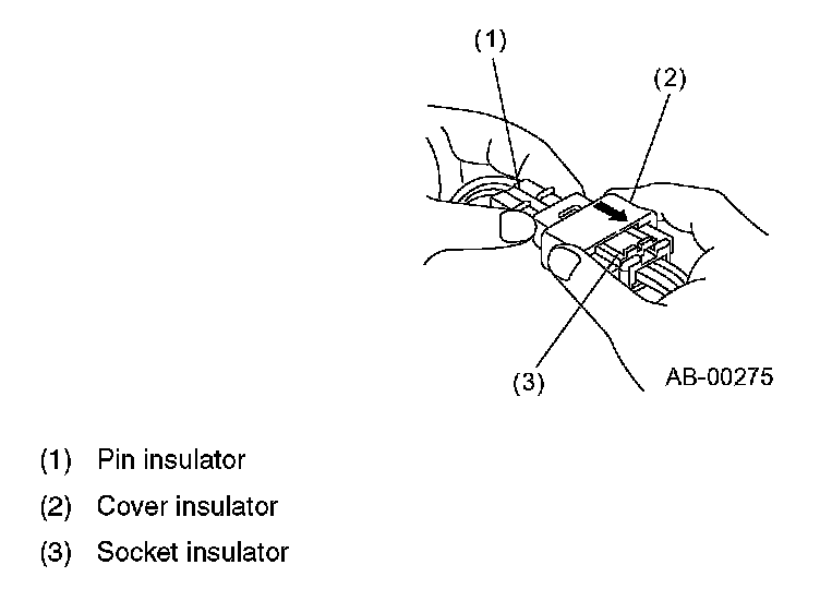 Step 2: Push the socket insulator forcibly toward the pin insulator.The cover insulator will move riding over the claw to complete engagement of the connector.