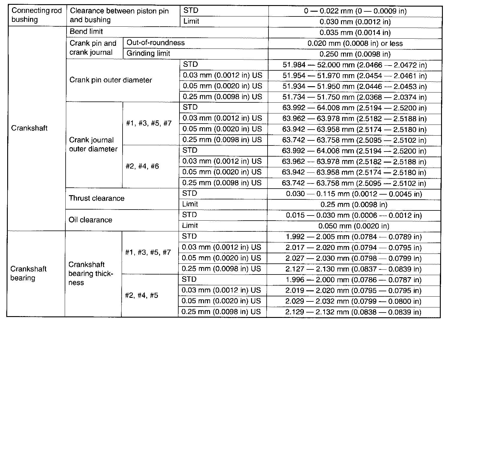 NOTE: STD: Standard I.D.: Inner Diameter O.D.: Outer Diameter US: Undersize OS: Oversize