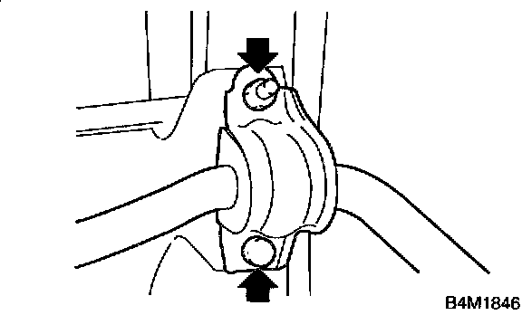 NOTE: Install bushing (on front crossmember side) while aligning it with paint mark on stabilizer.