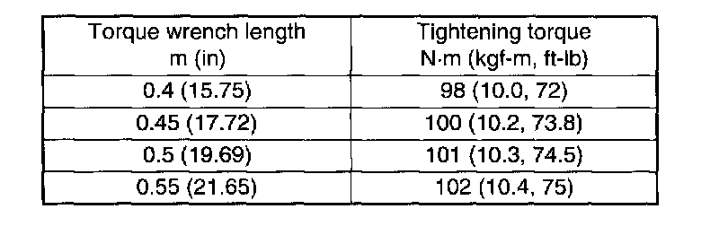 Tightening torque: 41 Nm (4.2 kgf-m, 30.4 ft. lbs.)