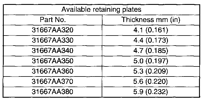 1. Place the same thickness of shim on both sides to prevent retaining plate from tilting.