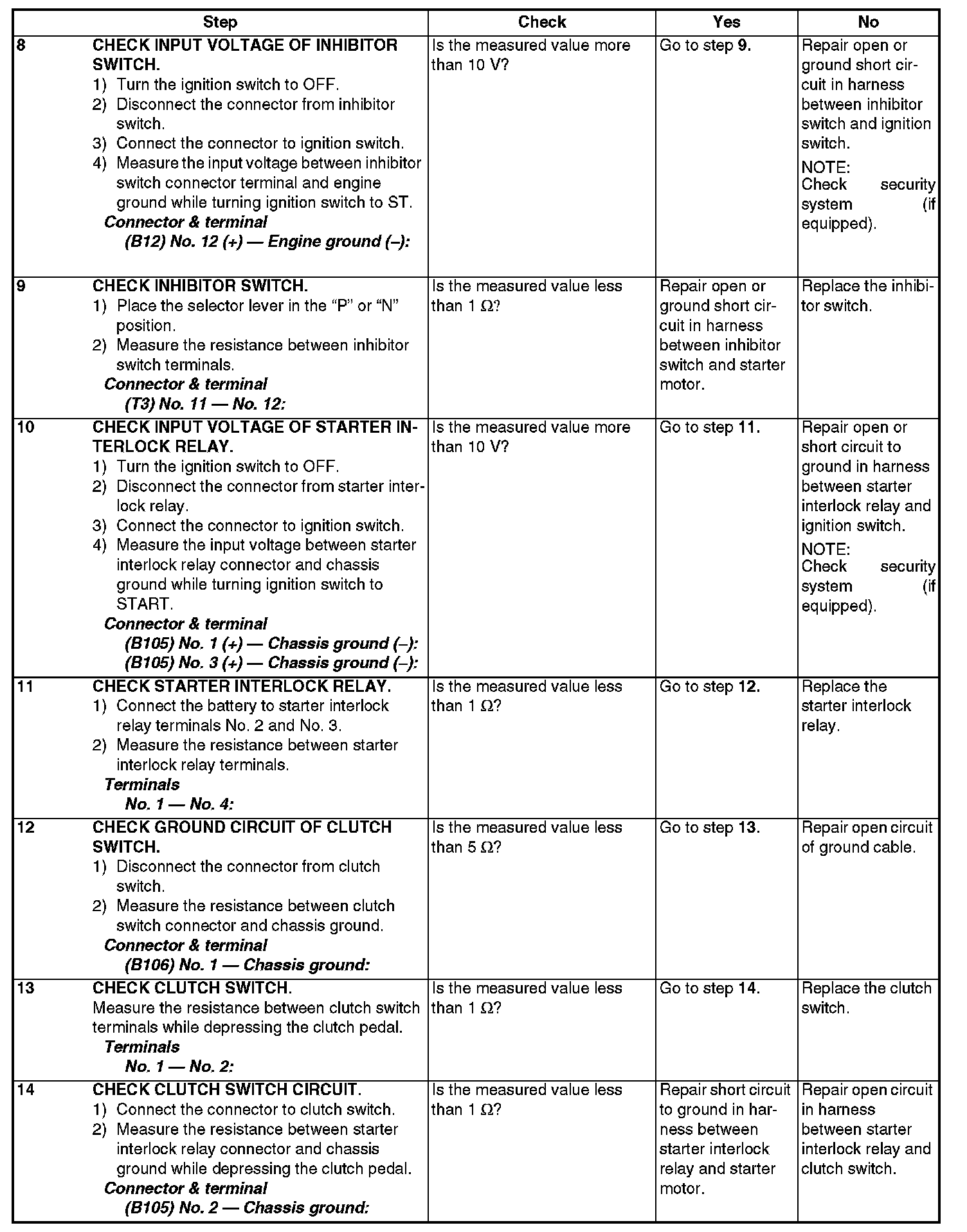 STARTER MOTOR CIRCUITCAUTION: After repair or replacement of faulty parts, conduct Clear Memory Mode and Inspection Mode.