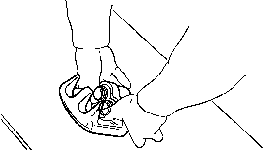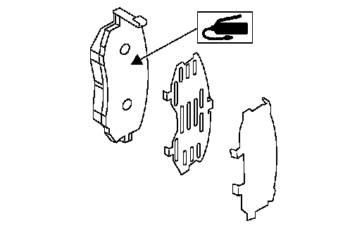 ^ A wear indicator is provided on the inner disc brake pad. If the pad wears down to such an extent that the end of the wear indicator contacts the disc rotor, a squeaking sound is produced as the wheel rotates. If this sound is heard, replace the pad.