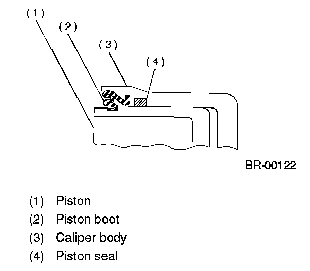2. Apply a coat of brake fluid to the piston seal and fit piston seal in groove on caliper body.