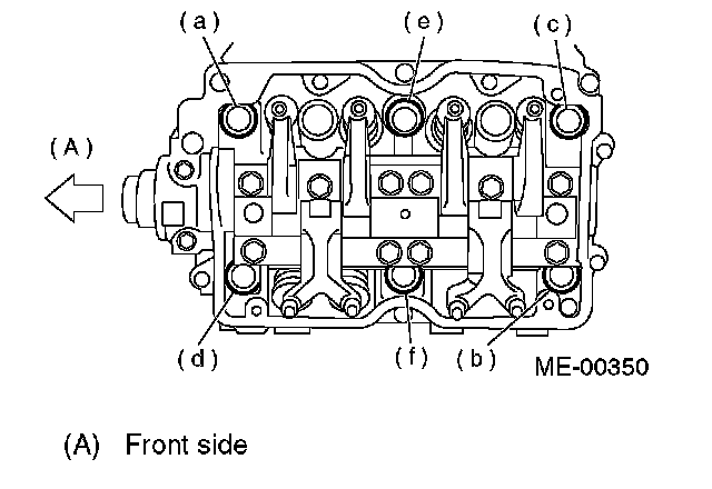 NOTE: Leave bolts (a) and (b) engaged by three or four threads to prevent cylinder head from falling.