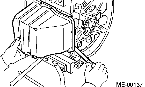 3 Insert a oil pan cutter blade between cylinder block-to-oil pan clearance and remove oil pan.