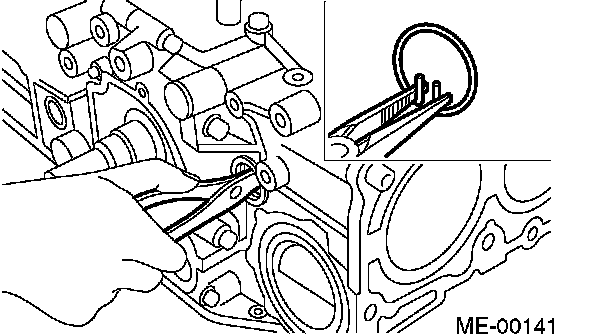 NOTE: Do not allow fluid packing to jut into O-ring grooves, oil passages, bearing grooves, etc.