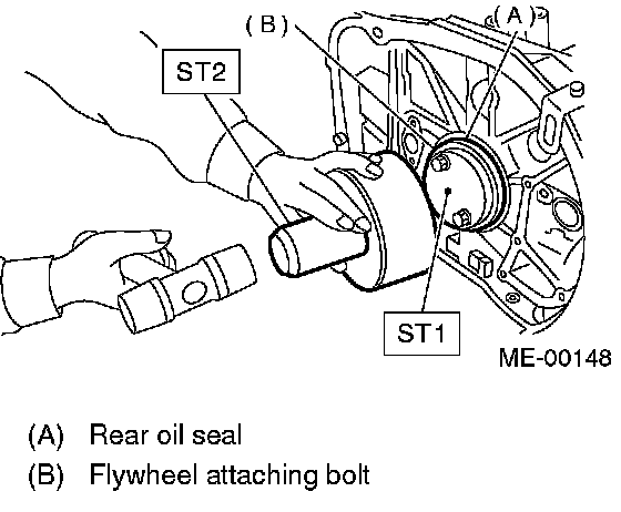 1 Discard front oil seal after removal. Replace with a new one using ST.