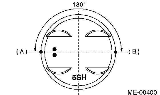 NOTE: Remove oil in the mating surface of bearing and cylinder block before installation. Also apply a coat of engine oil to crankshaft pins.