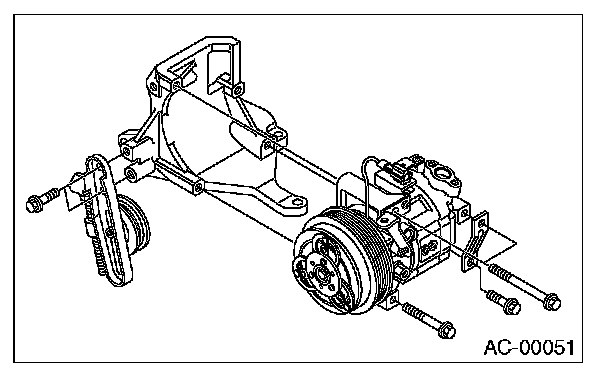 11. Loosen bolts to remove compressor from bracket.