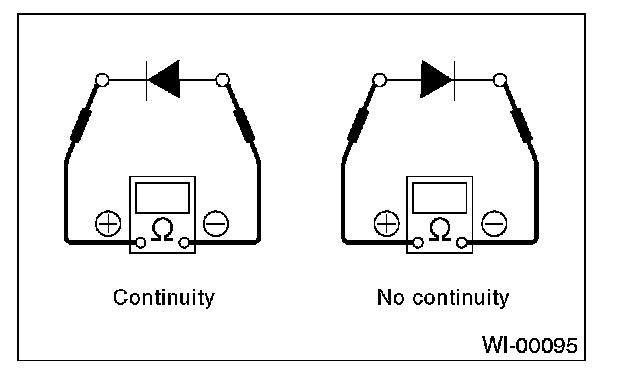 2. Use an ohmmeter to check for the diode continuity. When contacting the negative lead to diode positive side and positive lead to negative side, there should be continuity. When contacting the two leads in reverse, there should be no continuity.