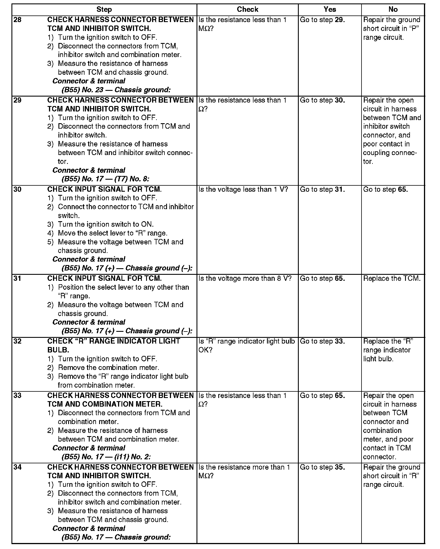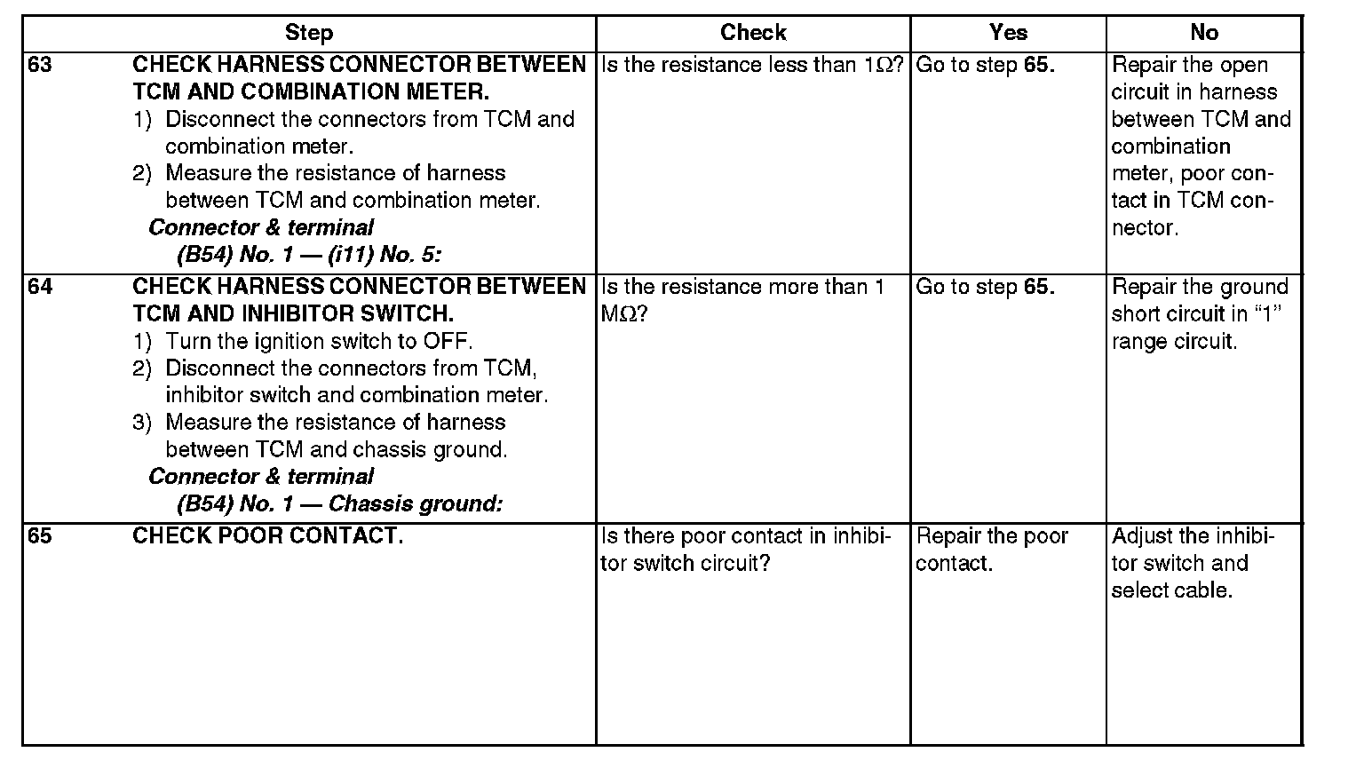 The input signal circuit of inhibitor switch is open or shorted.