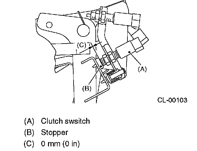 1. Install the clutch switch and clutch pedal stopper so that the gap between them is 0 mm (0 inch).