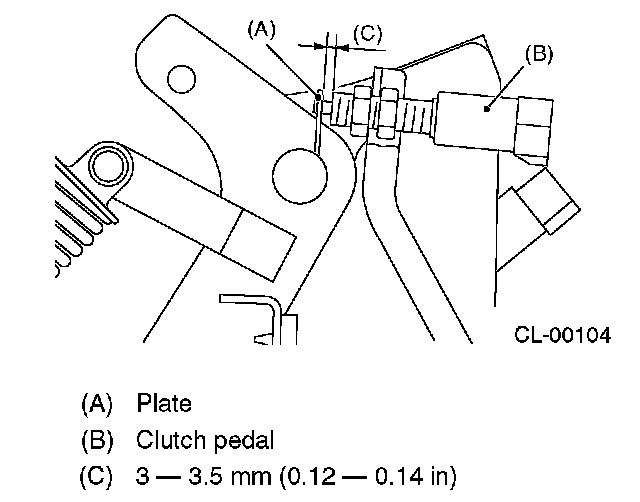 2. Install the clutch pedal plate and clutch pedal so that the gap between them is 3 - 3.5 mm (0.12 - 0.14 inch), and then tighten the lock nut.