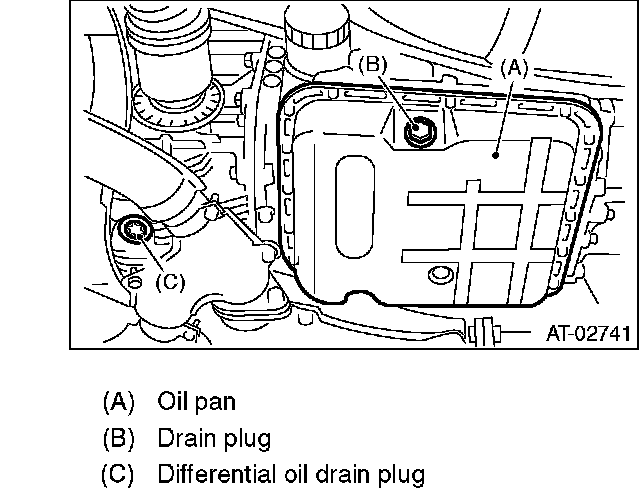 NOTE: Tighten the ATF drain plug after draining the ATF.