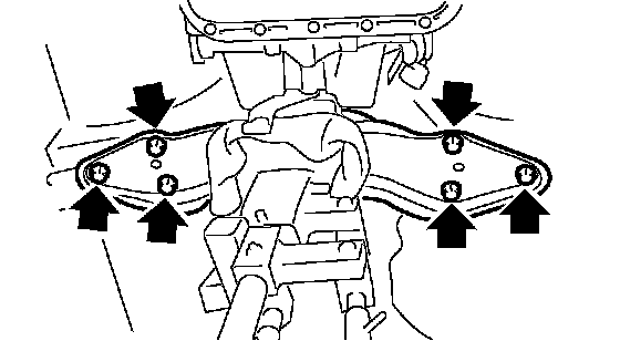 NOTE: Make sure that the support plates of transmission jack don't touch the crossmember.