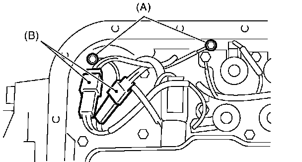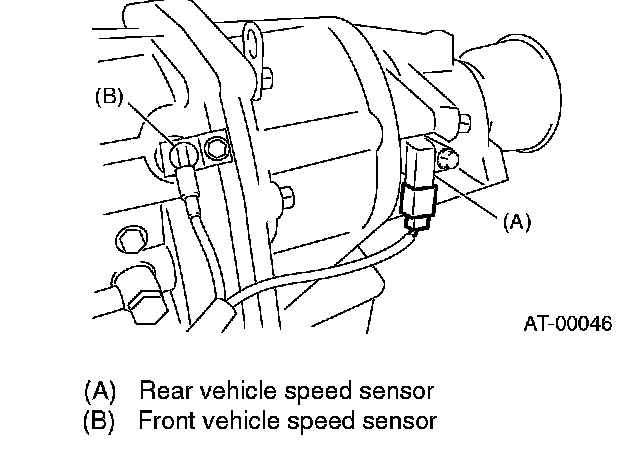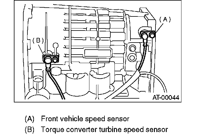 7. Install the front and rear vehicle speed sensor, and also the torque converter turbine speed sensor, and then fasten the harness.