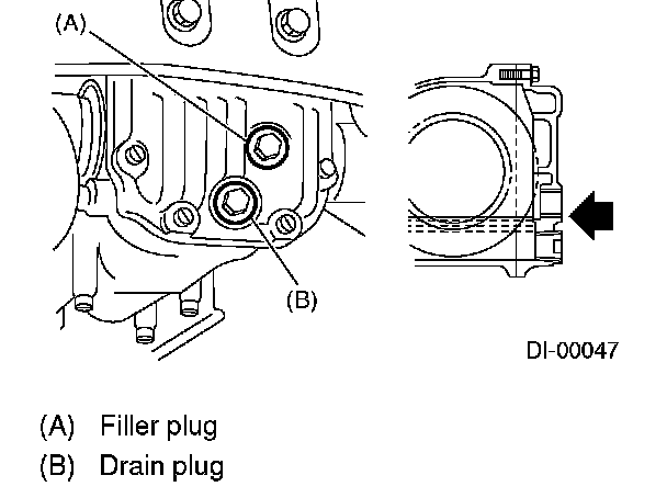 1. Take out filler plug, and replace gear oil if it is contaminated or deteriorated.