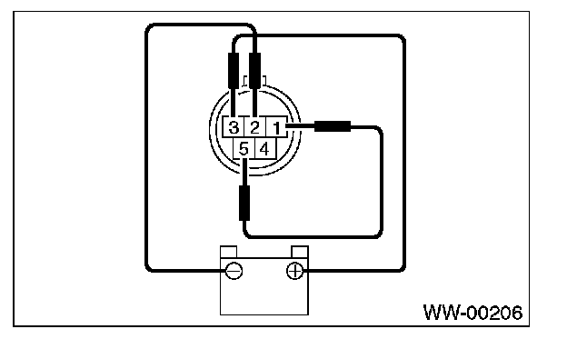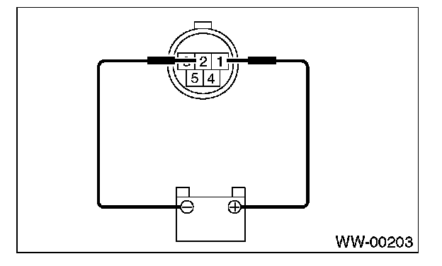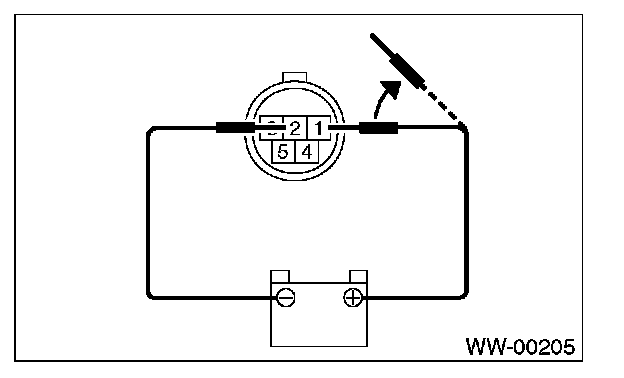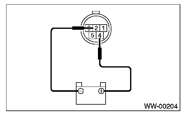 3. Connect battery to terminals of connector, and remove terminal connection with motor rotated at low speed, and stop wiper motor through operation.