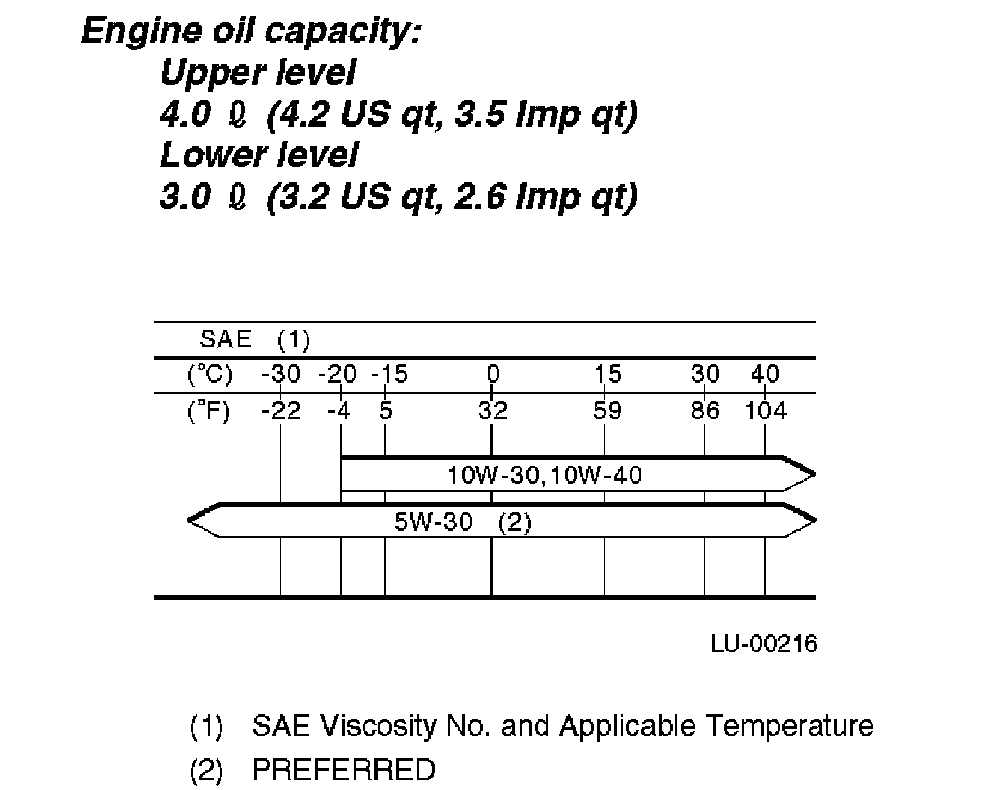 Recommended oil ILSAC GF-3, which can be identified with the new API certification mark (Star burst mark) API classification SL with the words "ENERGY CONSERVING" (if you cannot obtain the oil with SL grade, you may use SJ grade "ENERGY CONSERVING" oil)