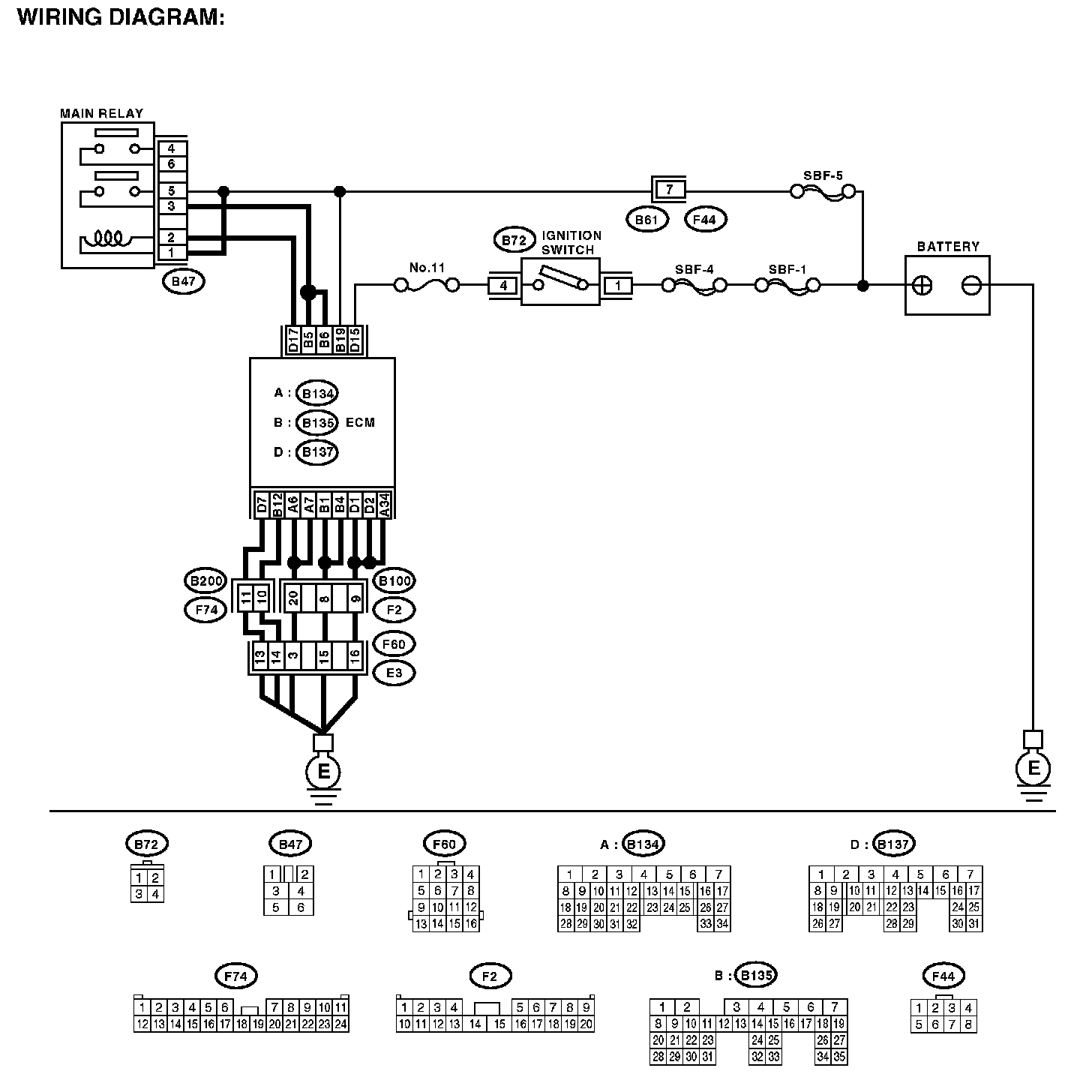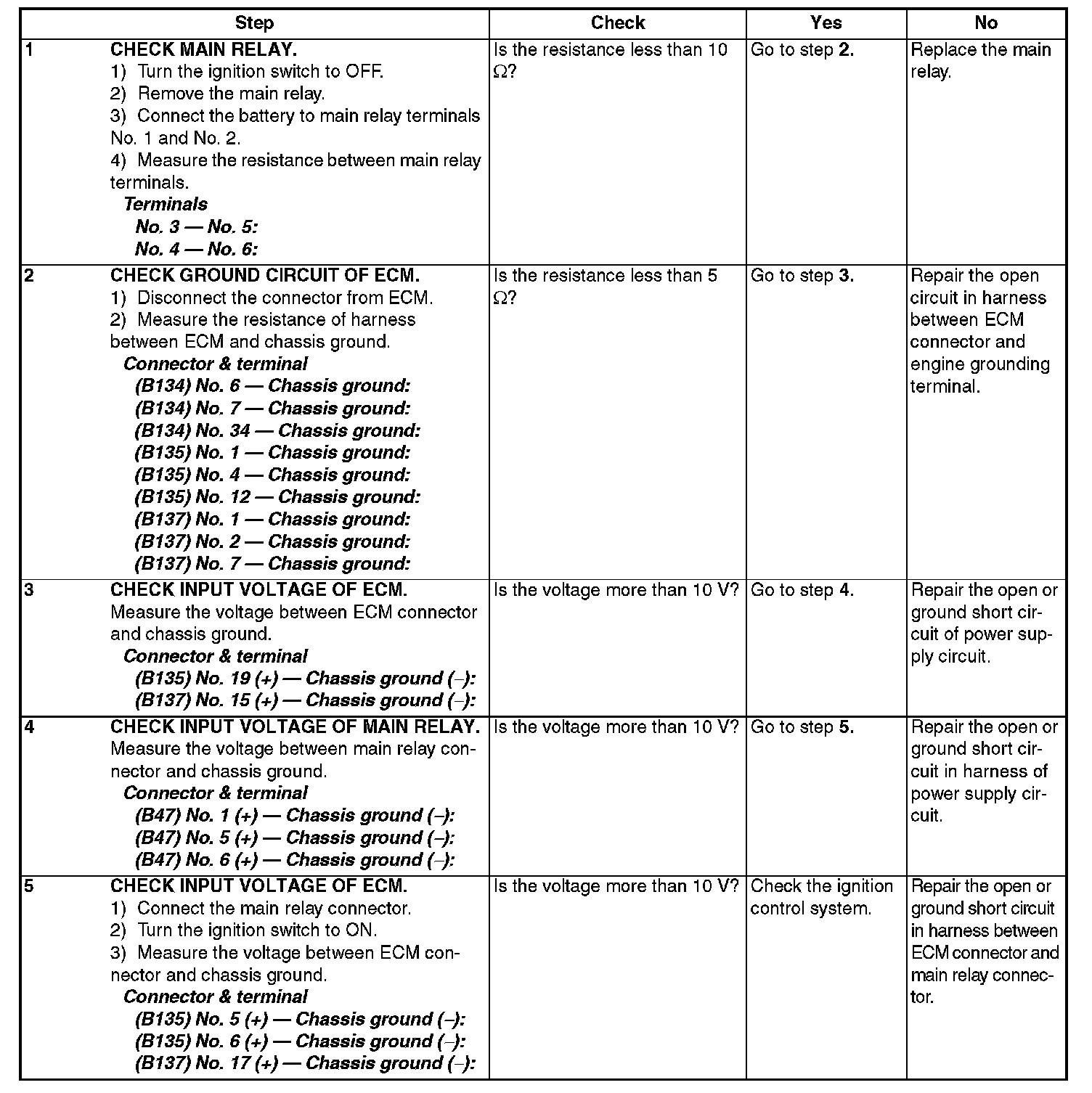 CHECK POWER SUPPLY AND GROUND LINE OF ENGINE CONTROL MODULE (ECM)CAUTION: After repair or replacement of faulty parts, conduct Clear Memory Mode and Inspection Mode.