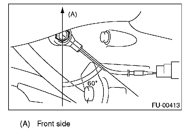 NOTE: Extraction area of the knock sensor cord must be positioned at a 60 degree angle relative to the engine rear.