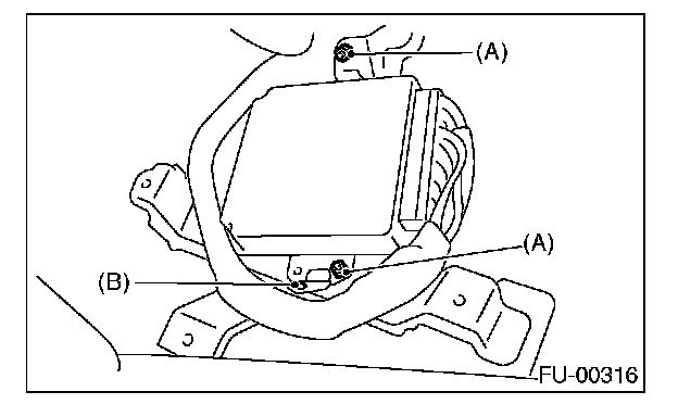 5. Remove the nuts (A) which hold ECM to the bracket.