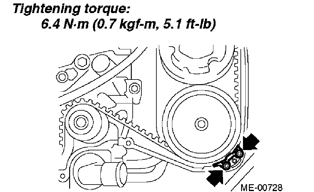 Using white paint, put alignment and/or arrow marks on the timing belts in relation to the sprockets