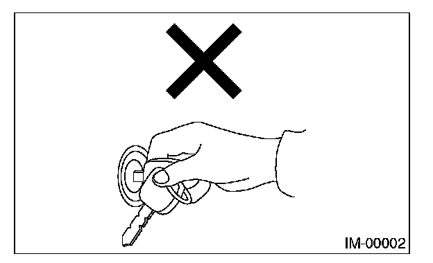 - When the ignition switch is being turned ON or OFF while diagnostic items are being checked, do not allow keys with different ID codes close to the ignition switch. If the ignition key is in a key holder, remove it from the holder before carrying out diagnoses.