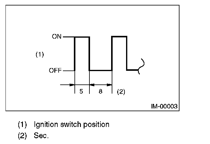 - When repeatedly turning the ignition switch to ON or OFF while diagnostic items are being checked, it should be switched in cycles of "ON" for at least 5 seconds -"OFF" for at least 8 seconds.