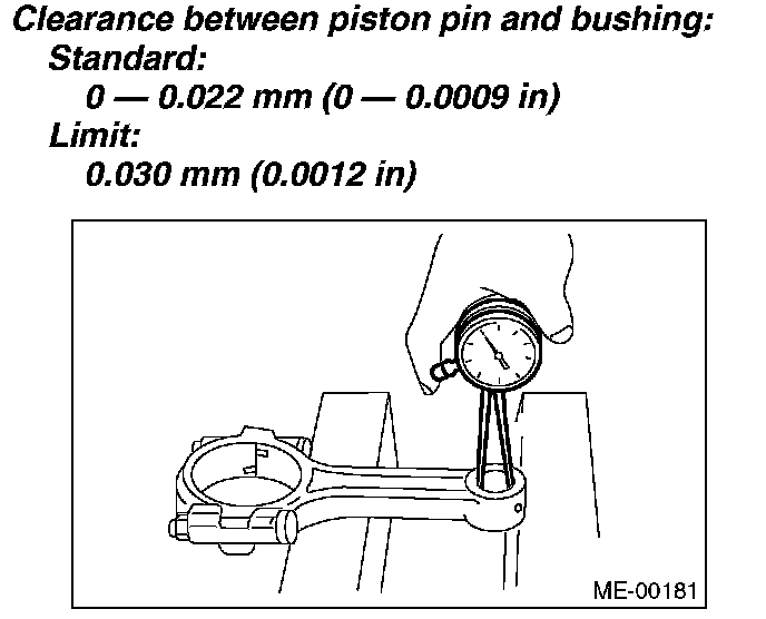 6) Inspect the bushing at connecting rod small end, and replace if worn or damaged. Also measure the piston pin clearance at the connecting rod small end.