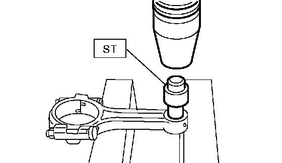 (2) Press the bushing with ST after applying oil on the periphery of bushing.