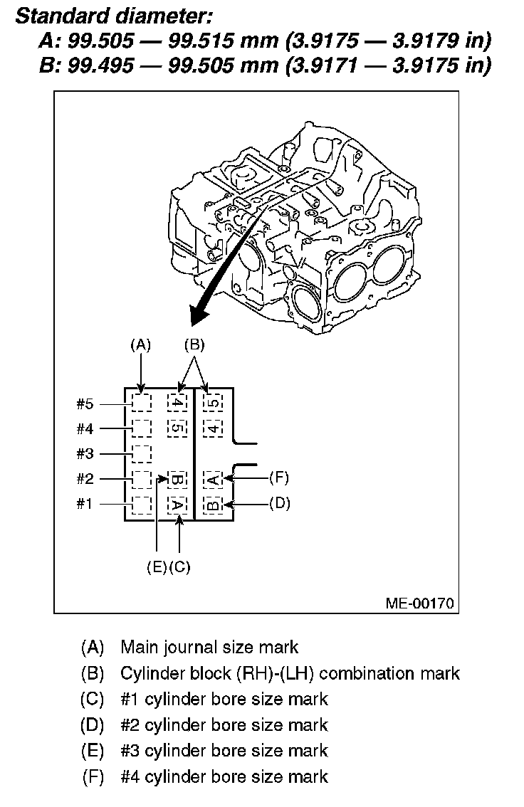 1) The cylinder bore size is stamped on the cylinder block's front upper surface.