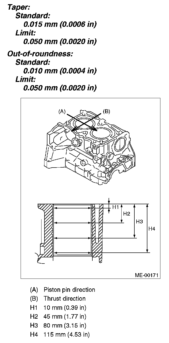 (2) If the cylinder inner diameter exceeds limit after boring and honing, replace the cylinder block.