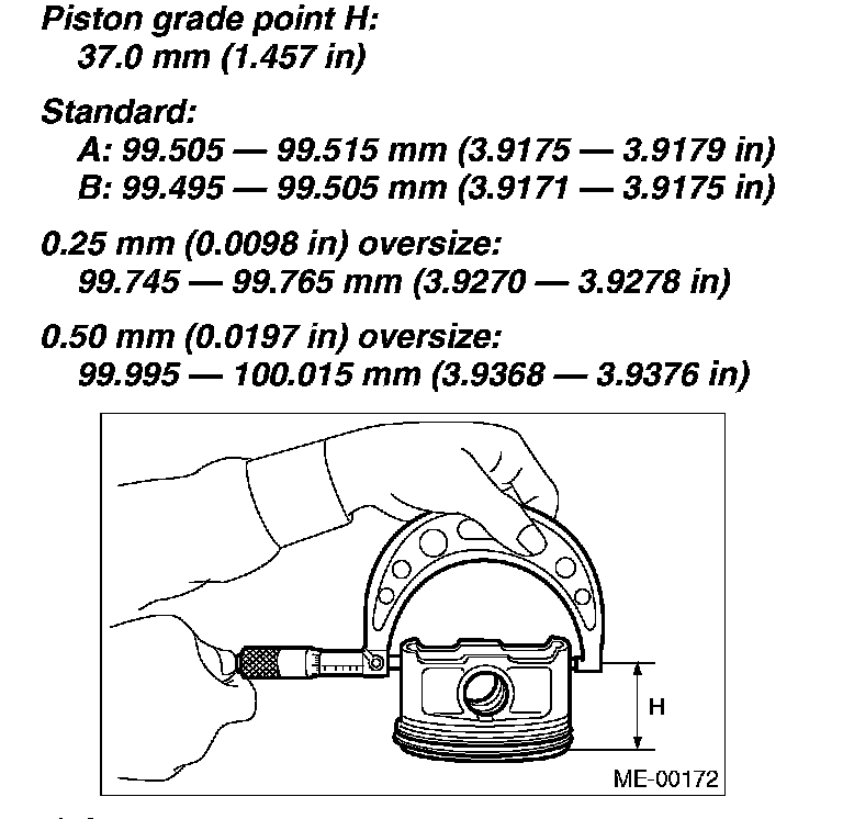 0.50 mm (0.0197 inch) oversize: 99.995 - 100.015 mm (3.9368 - 3.9376 inch)