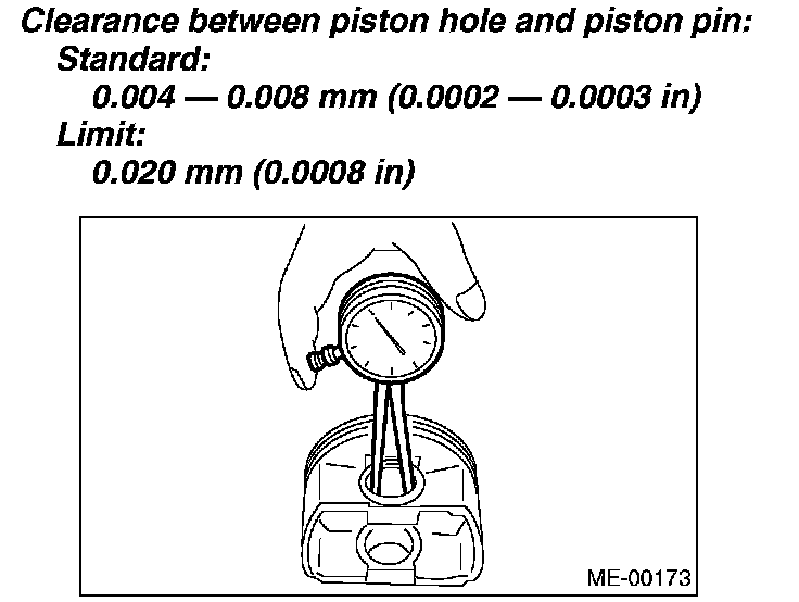 2) Measure the piston-to-cylinder clearance at each cylinder. If any of the clearances is not within the standard value, replace the piston. Or bore the cylinder to use an oversize piston.