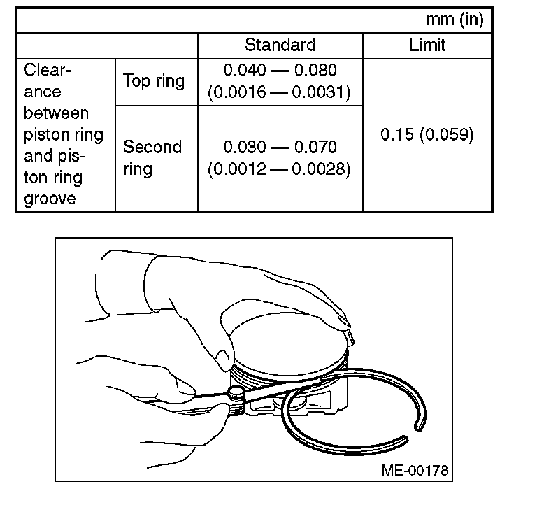 4) Measure the clearance between piston ring and piston ring groove with a thickness gauge.