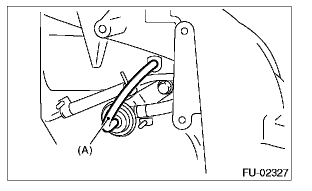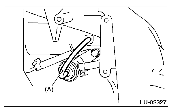 14. Connect the pressure regulator vacuum hose (A) to intake manifold.