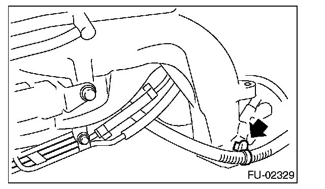 8. Disconnect the pressure regulator vacuum hose (A) from intake manifold.