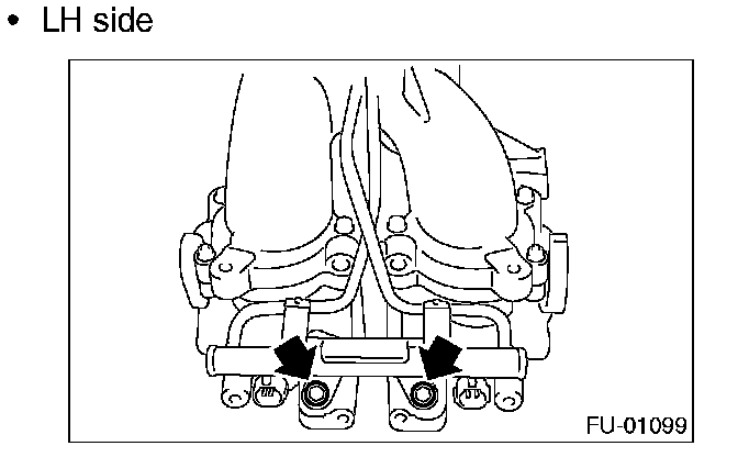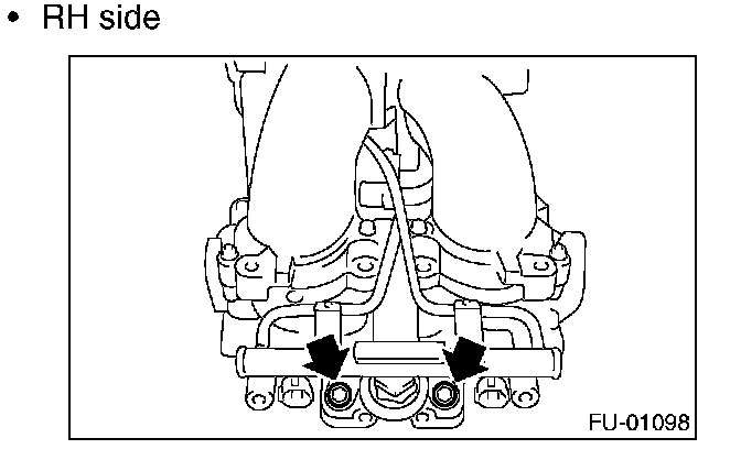21. Remove the bolt which installs the fuel pipes on intake manifold.