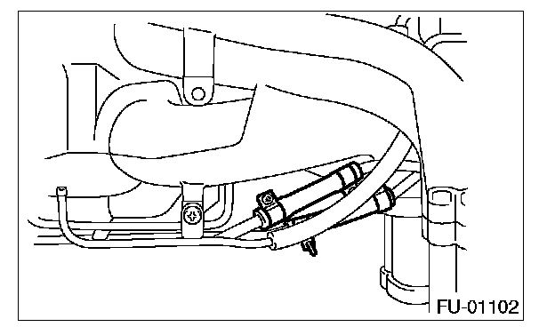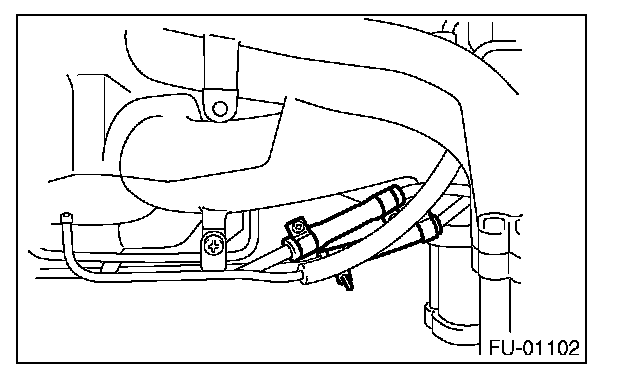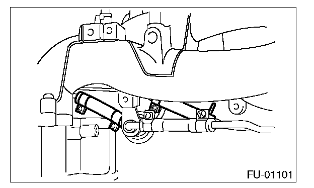 18. Loosen the clamp which holds fuel injector pipe LH to fuel hose, and then disconnect the pipe from fuel hose.
