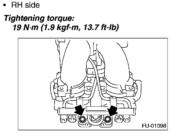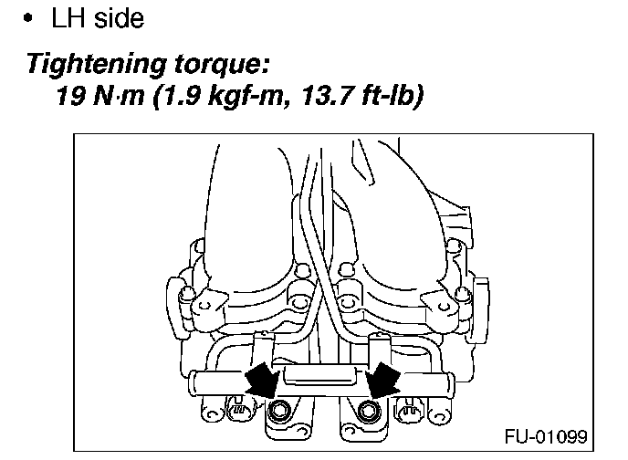 1. Tighten the bolt which installs the fuel pipes on intake manifold.